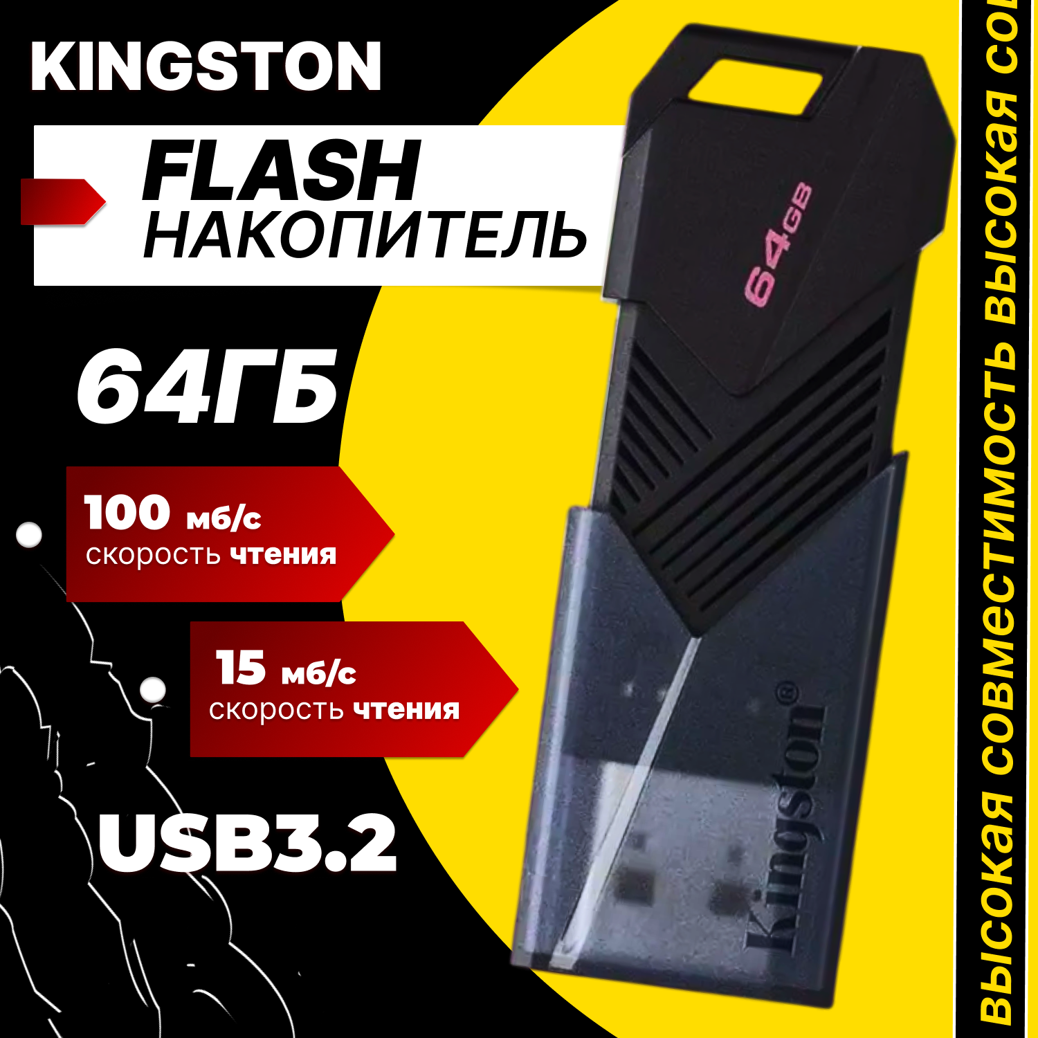 Флешка Kingston DataTraveler Exodia 64 Гб usb 3.2 Flash Drive - черная
