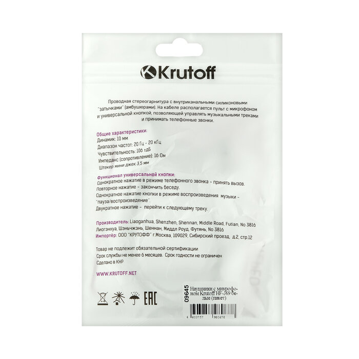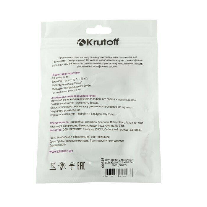 СохранитьНаушники с микрофоном Krutoff HF-J69 белые (пакет) интересное: