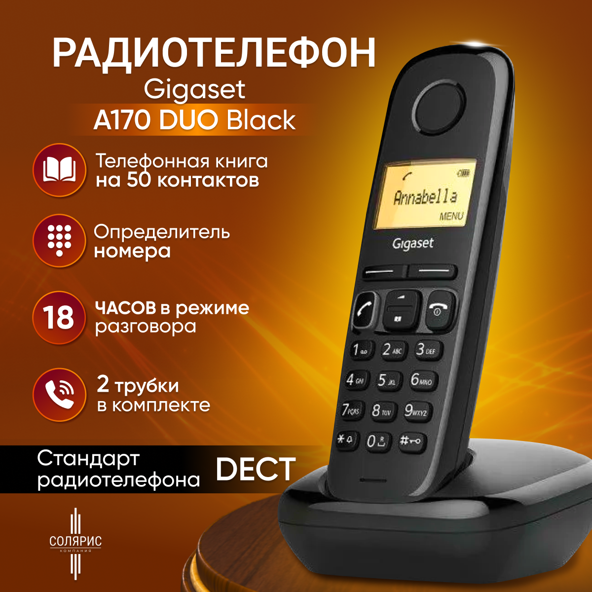 СохранитьРадиотелефон Gigaset Black A170 Duo интересное: