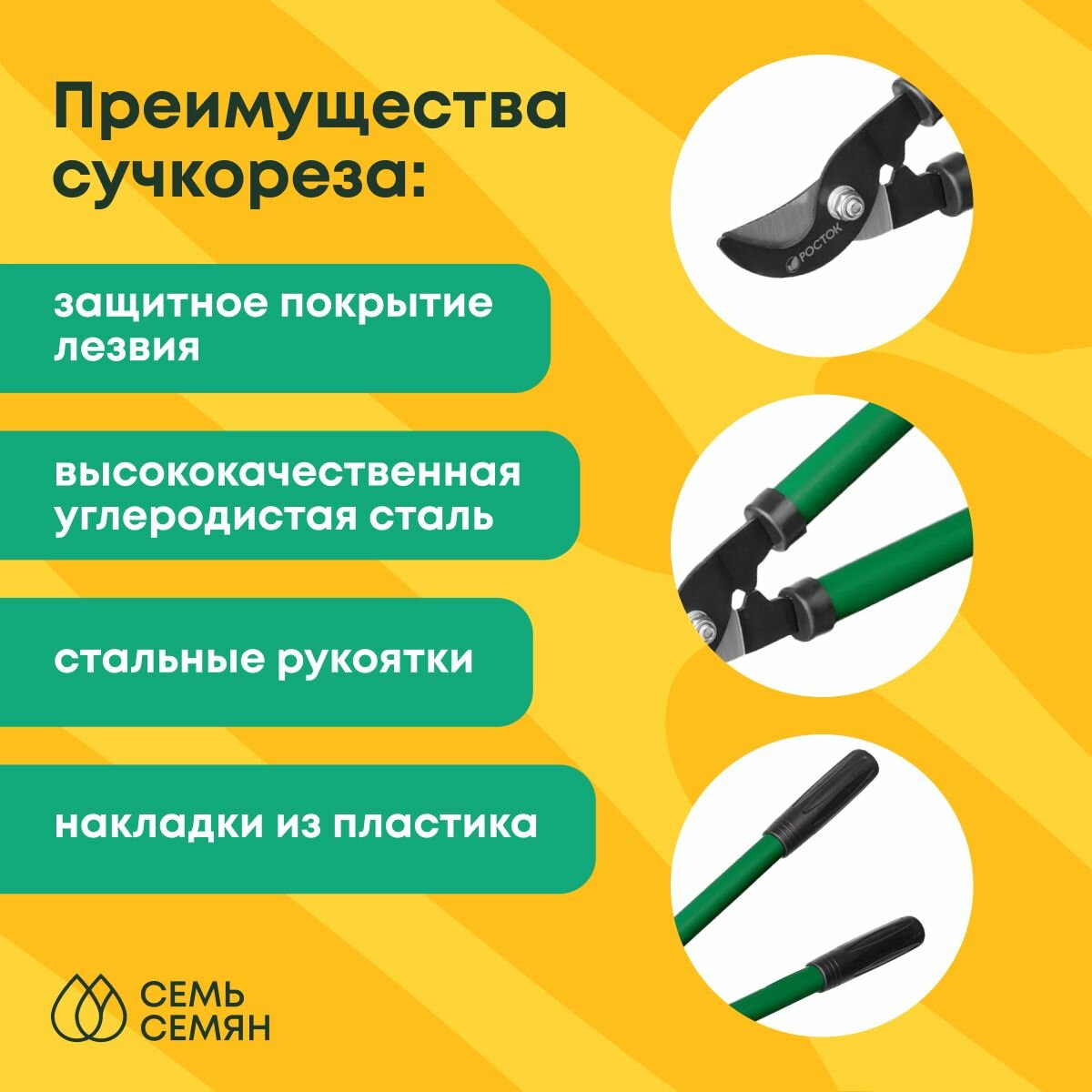 Отличный товар качественный рукоятки прочные металические ручки имеют удобное резиновое покрытие сучкорез уже был смазан - а это значит что он значительно дольше проработает покупкой остался доволен |