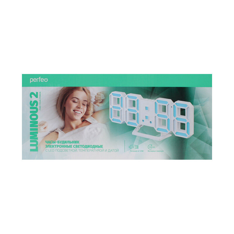 Будильник Perfeo (PF_B4924) Luminous 2 белый/синий