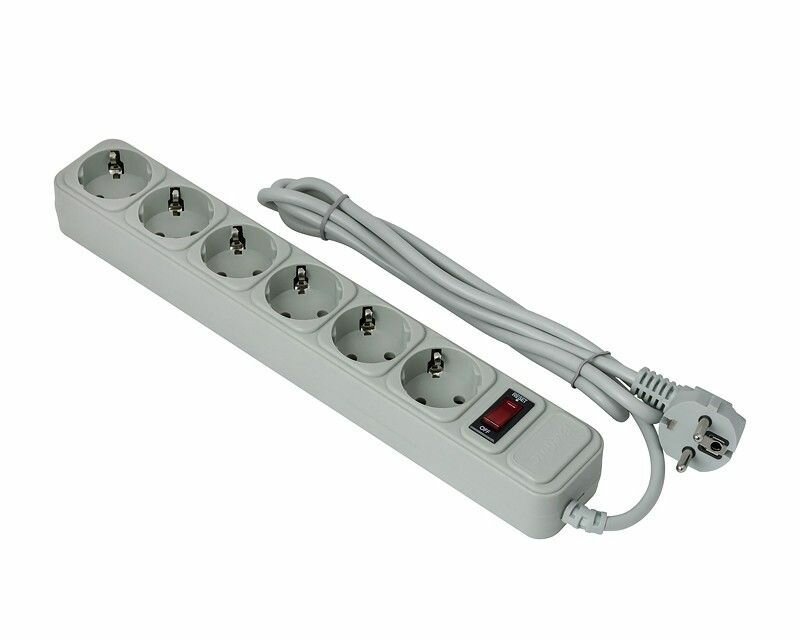 Удлинитель ExeGate EC-5-3G (5евро с заземлением, 3м, защита от перегр., выкл. с подсветкой, серый)EX285799RUS