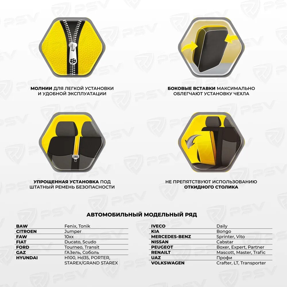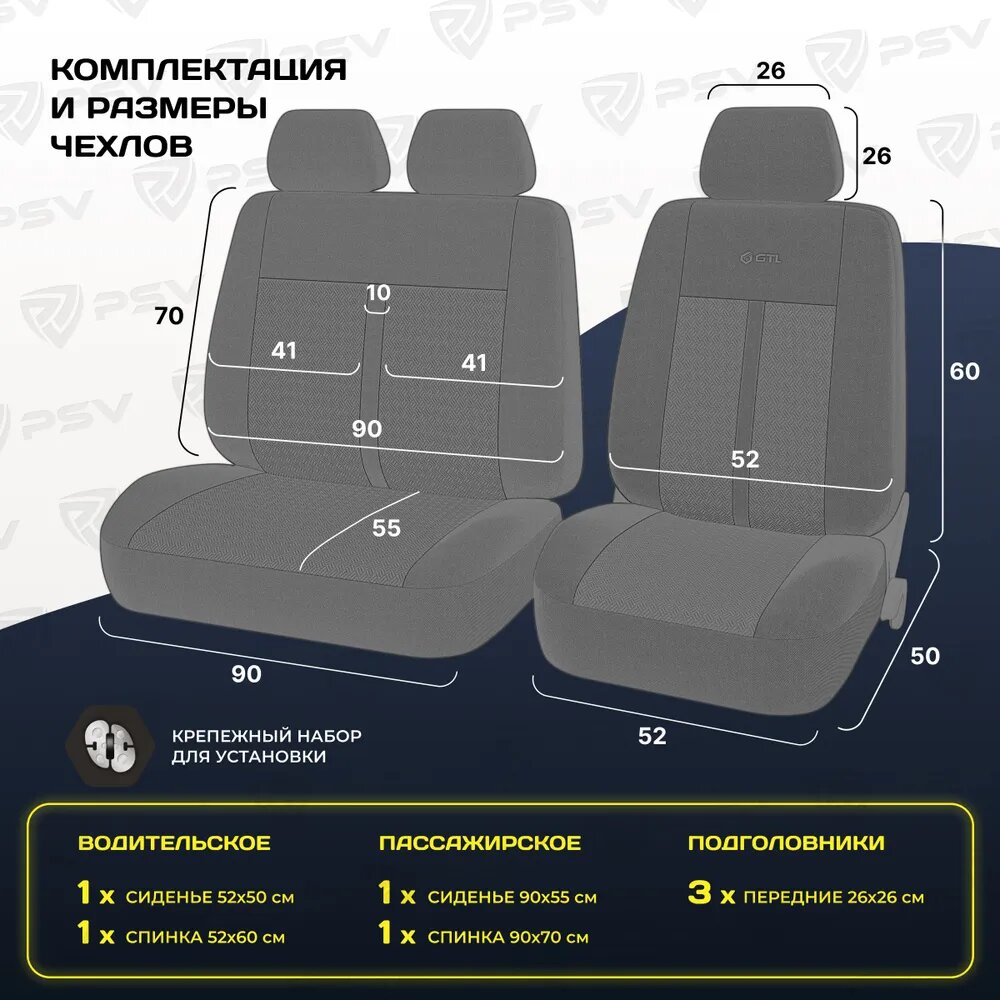 Чехлы PSV GTL Modern 2 передние полиэстер с имитацией жаккарда AirBag черные L PSV 126253 | цена за 1 шт