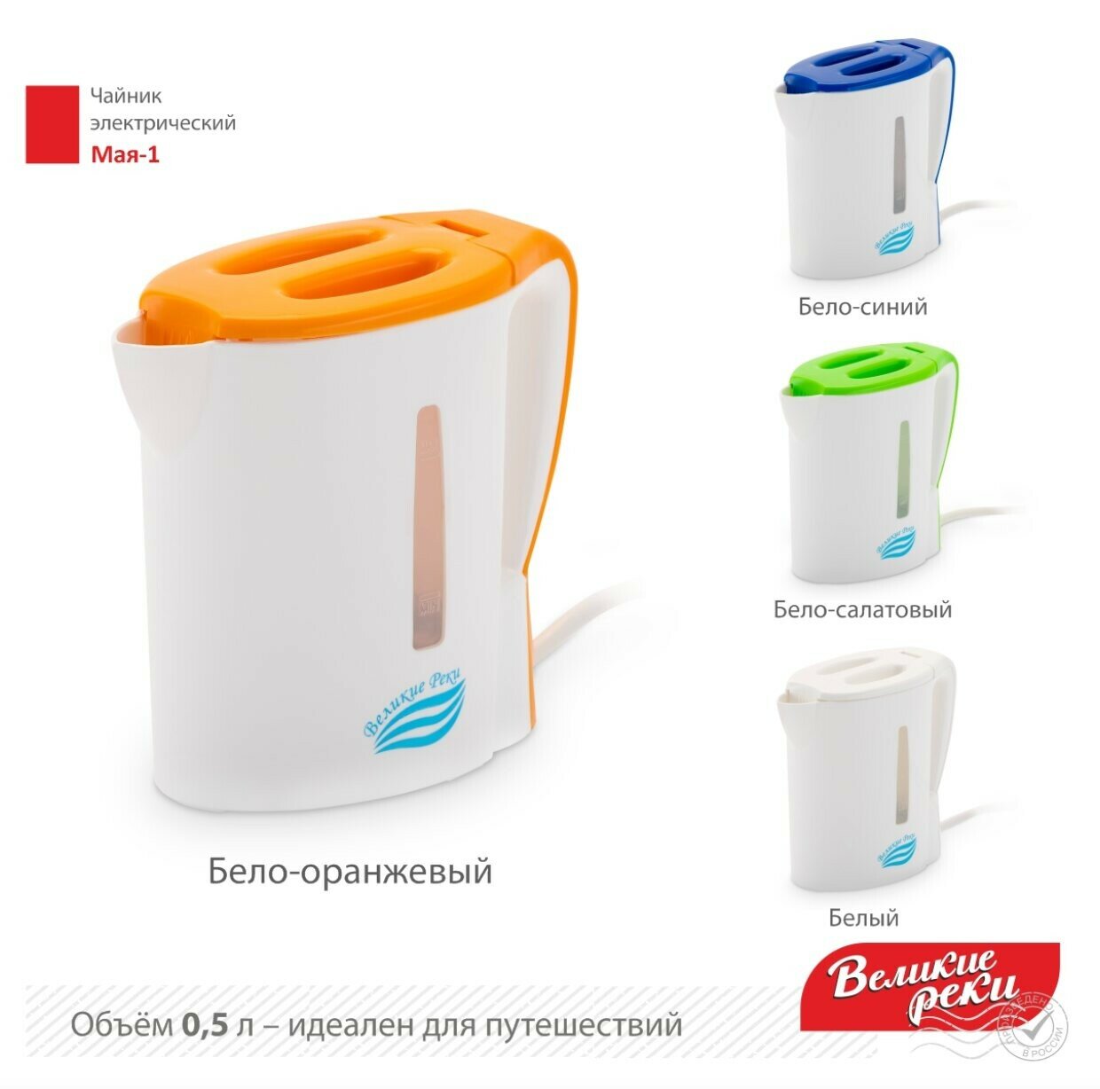 Чайник электрический великие реки Мая-1 бело-оранжевый, 0,5 л
