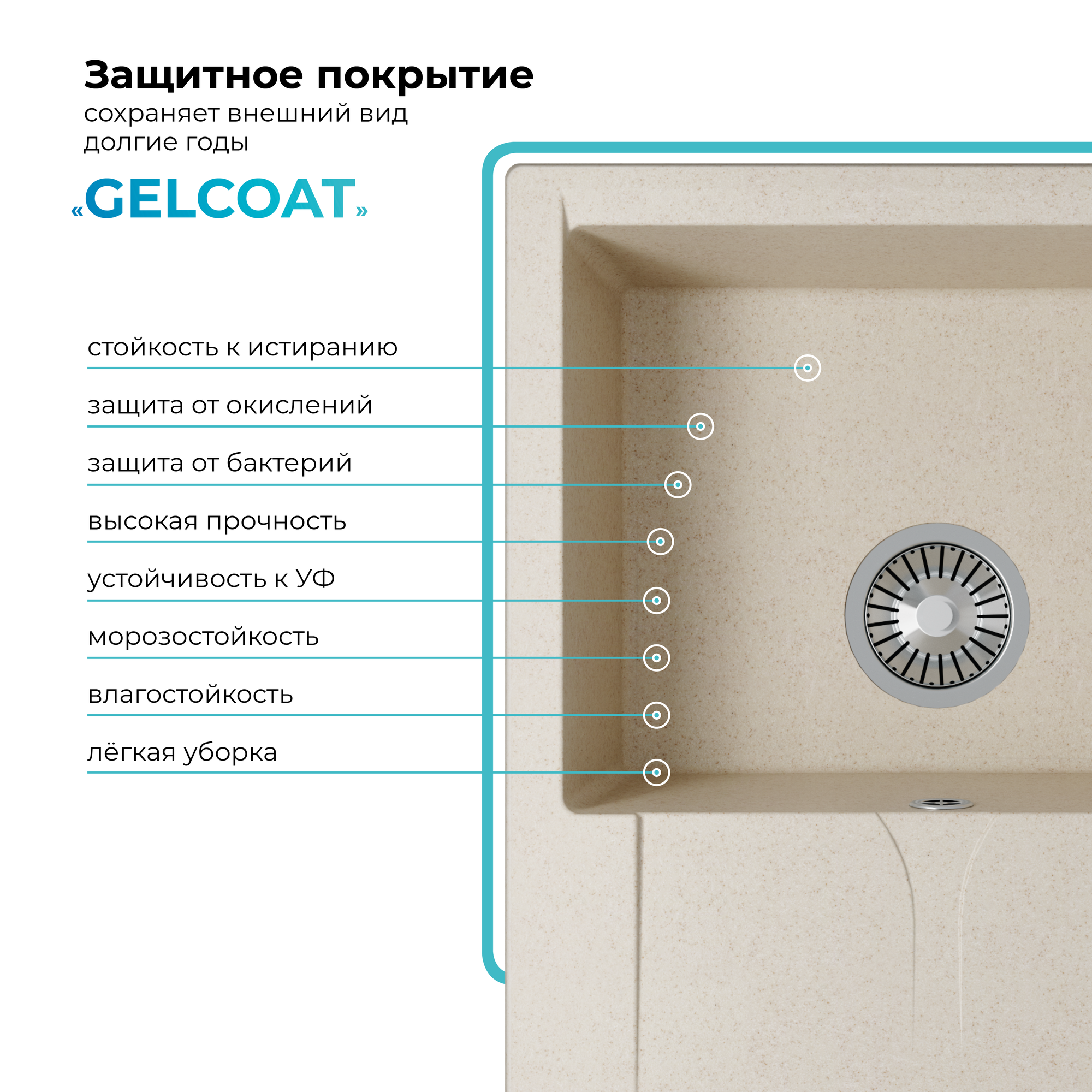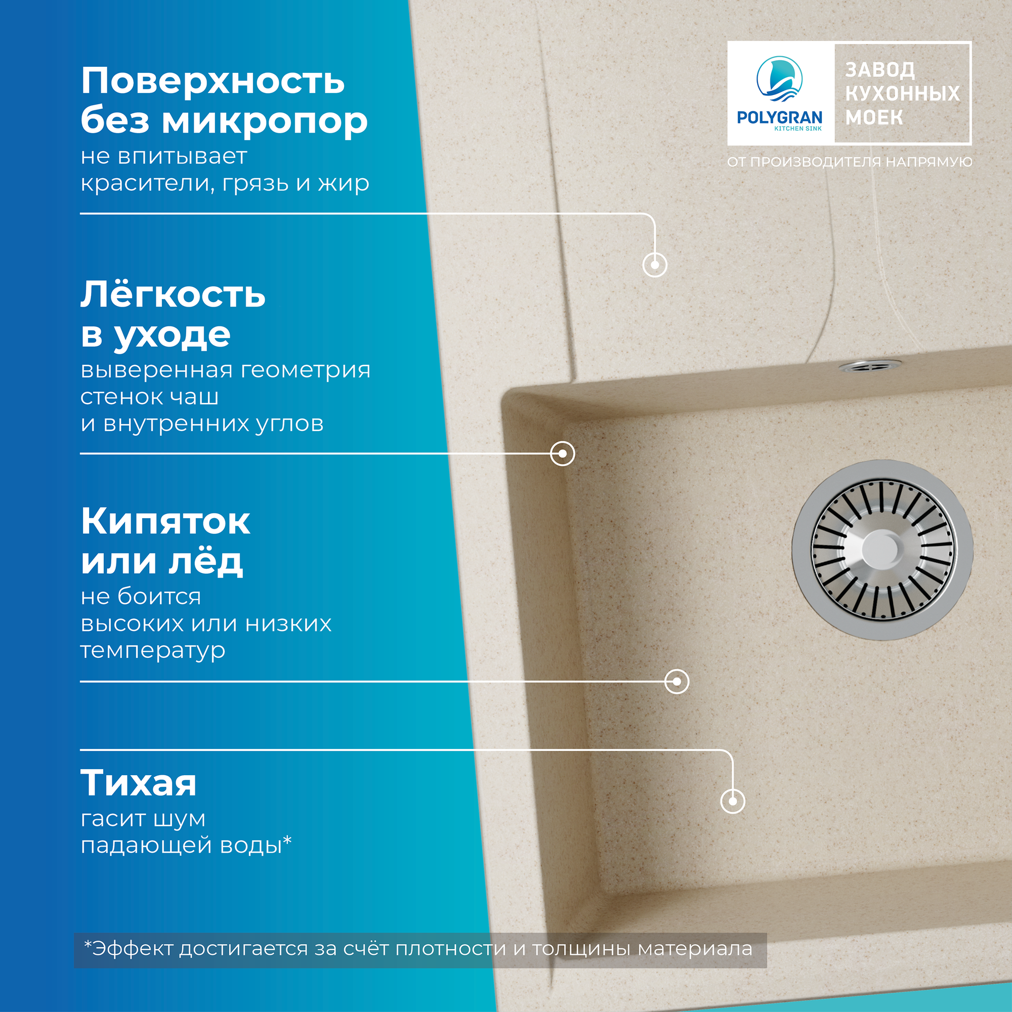 СохранитьКухонная мойка из искусственного камня POLYGRAN Gals-620 (№327 Кремовый) интересное: