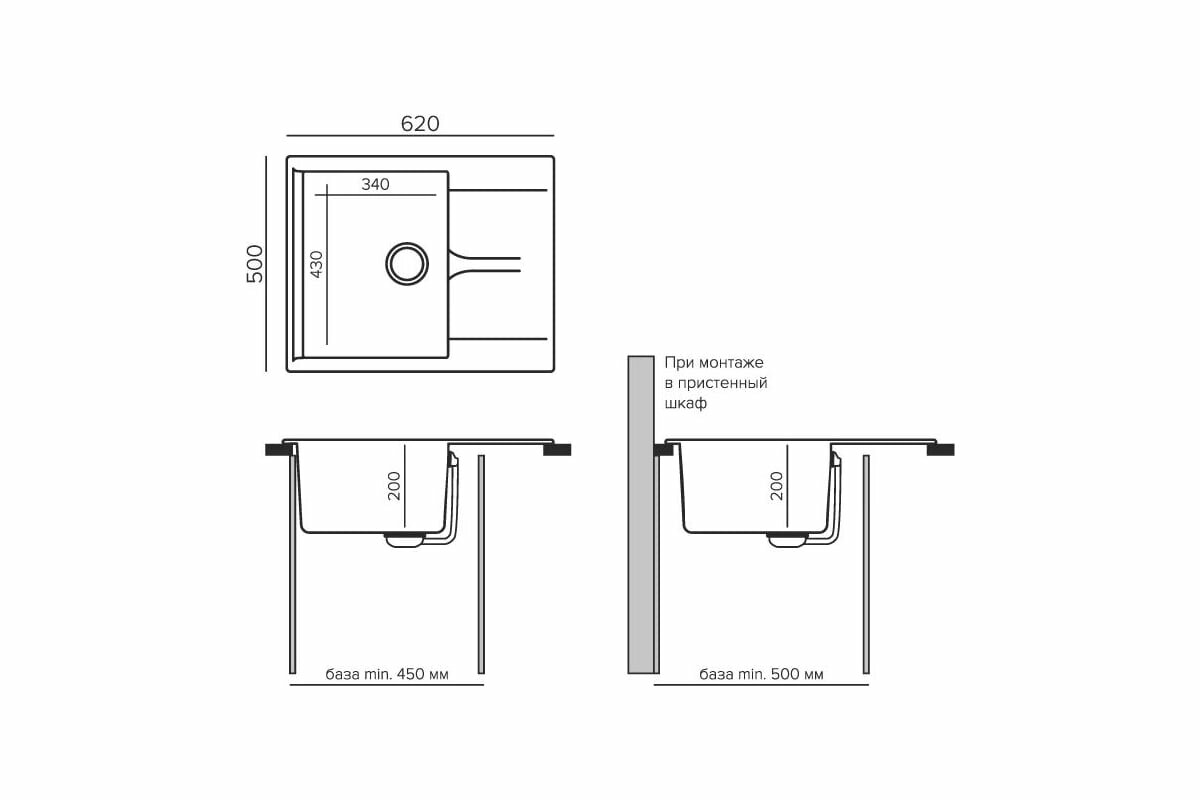 Мойка кухонная POLYGRAN Gals-620 Черный № 16