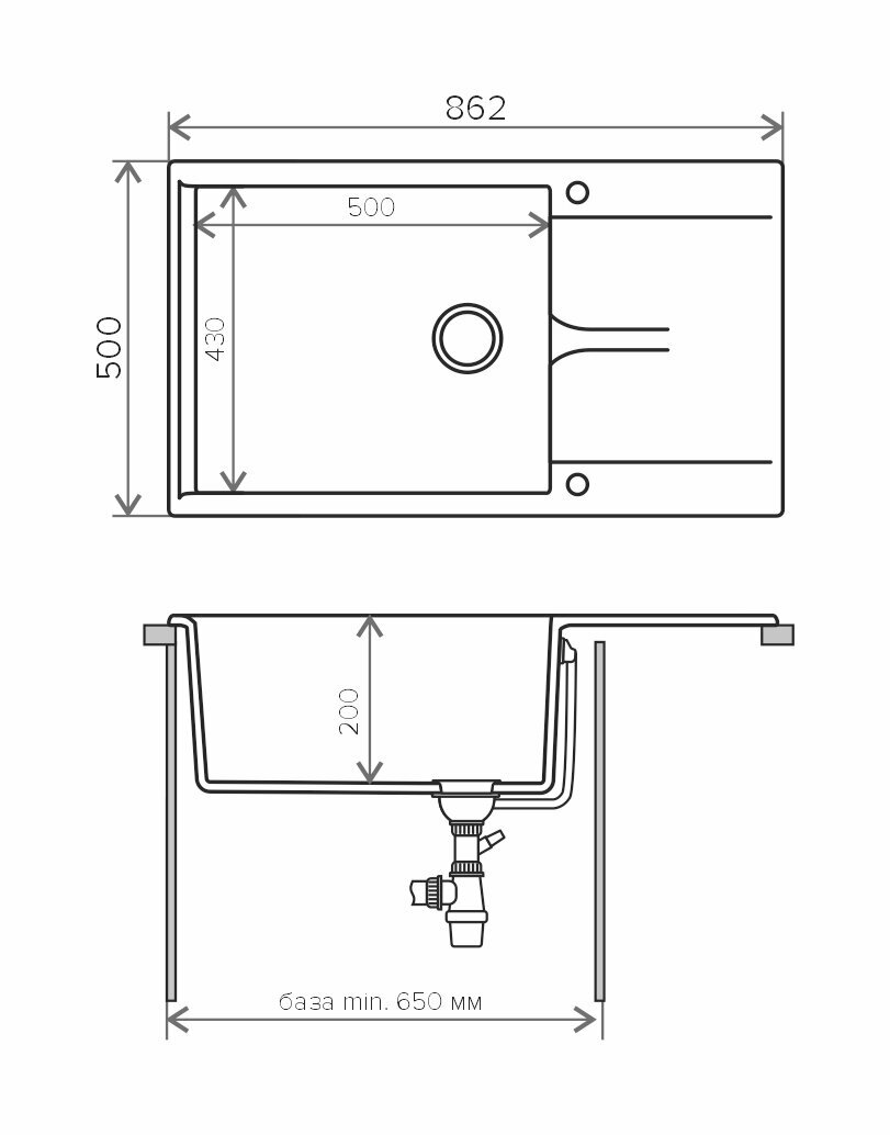 Накладная кухонная мойка 86.2 см, Polygran Gals-862, матовое черный 16