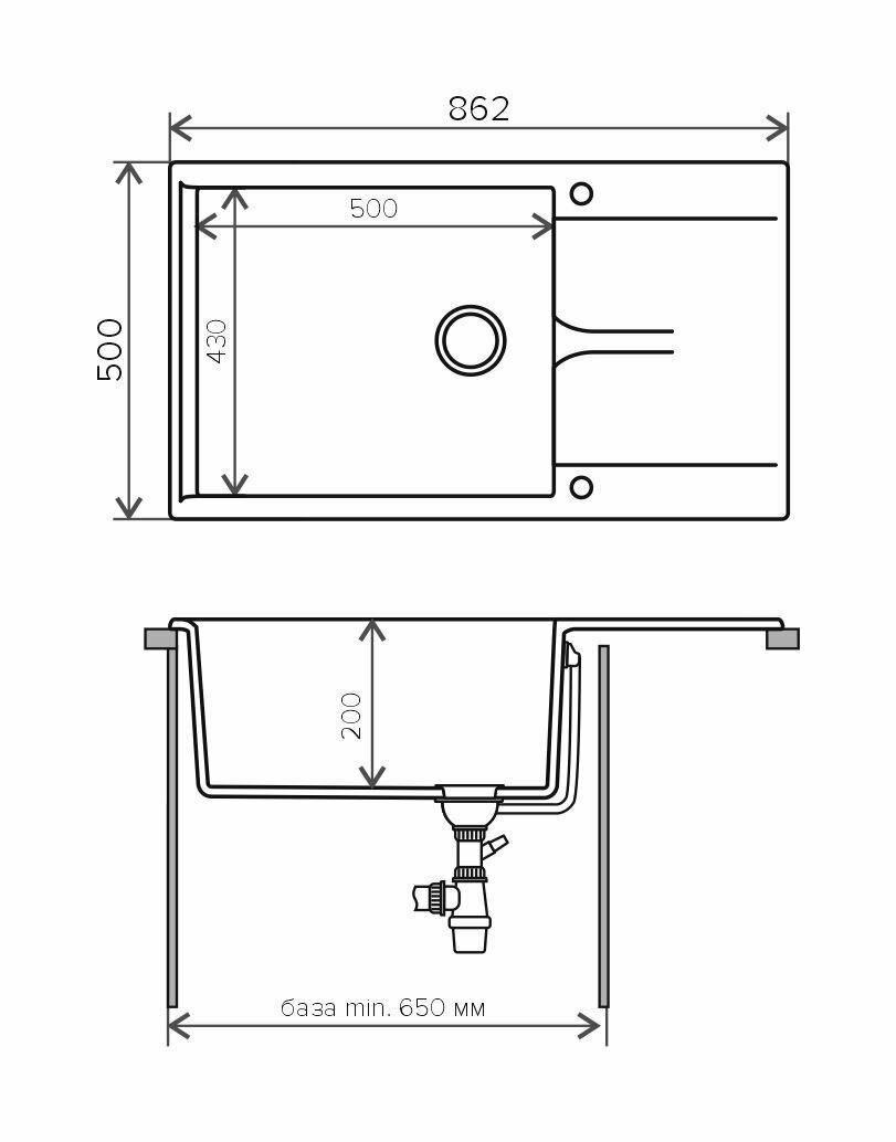 Врезная кухонная мойка 86.2х50см, Polygran Gals-862, матовое черный 16