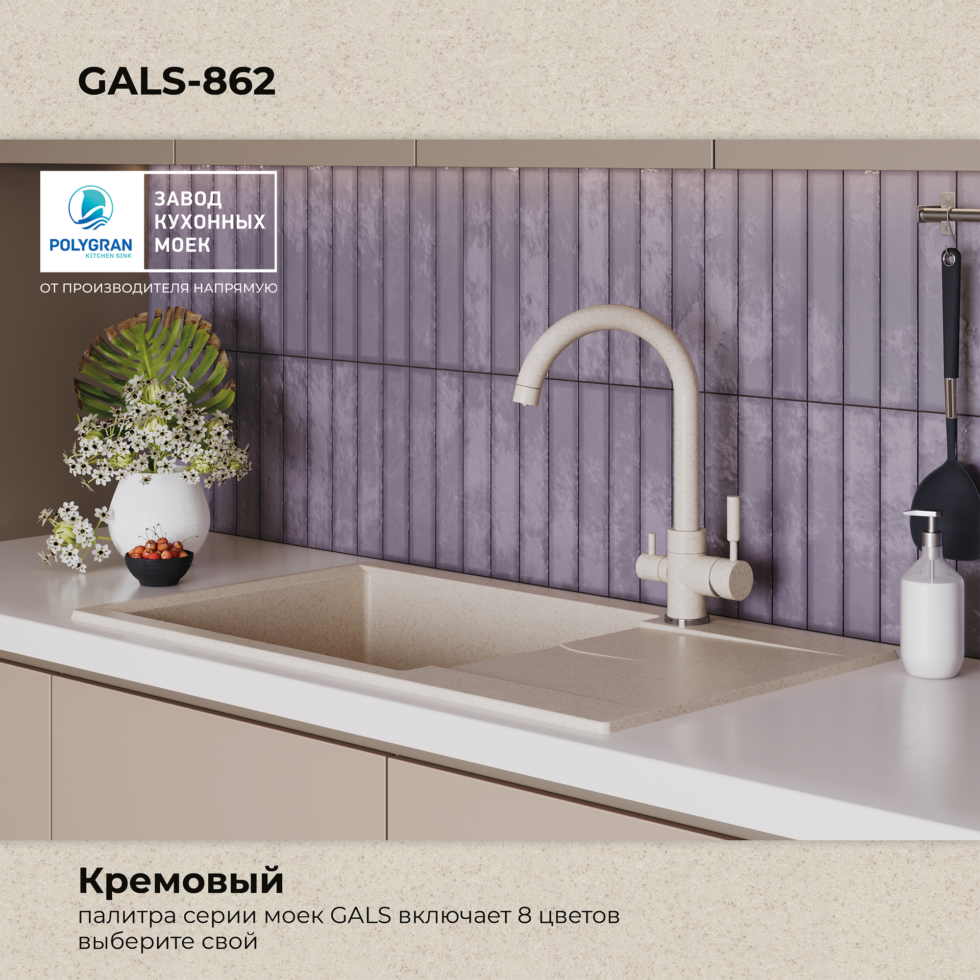 Купить Polygran GALS-862, мойка, мрамор, кремовый 327