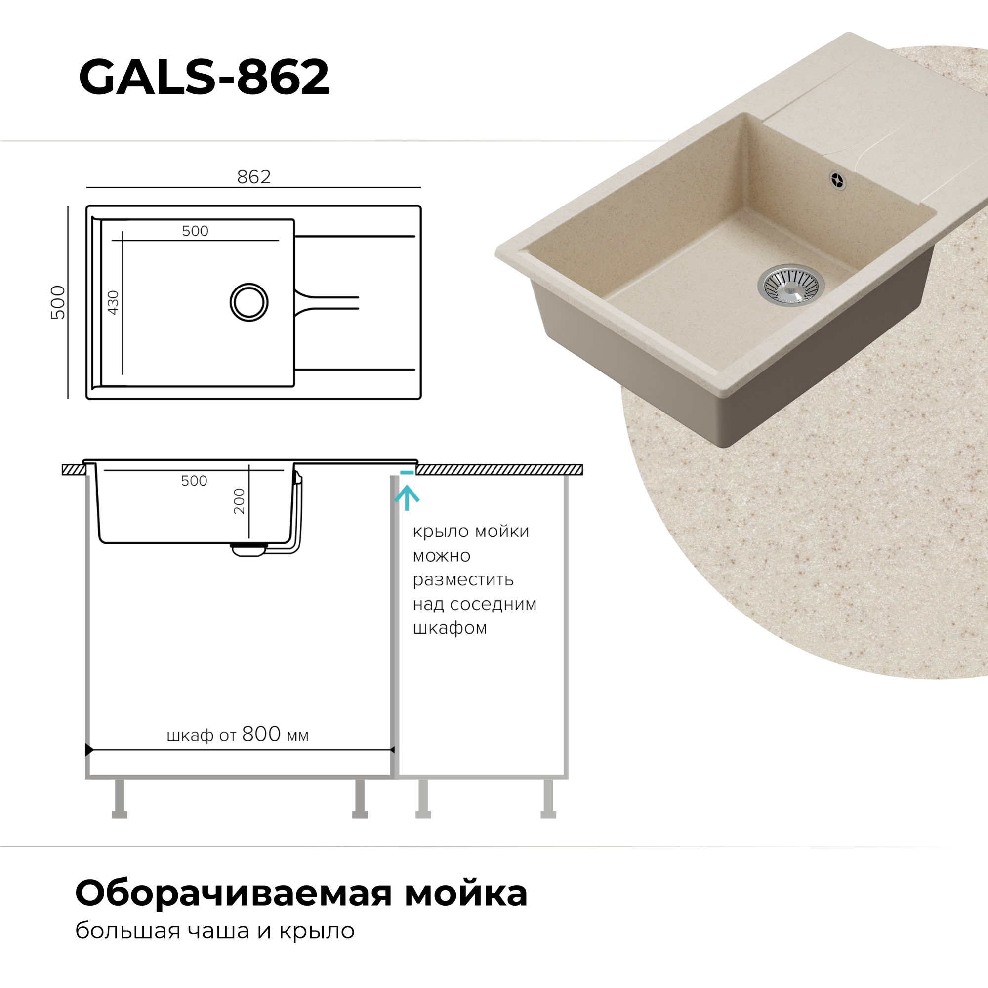 Мойки Polygran GALS-862, мойка, мрамор, черный 16