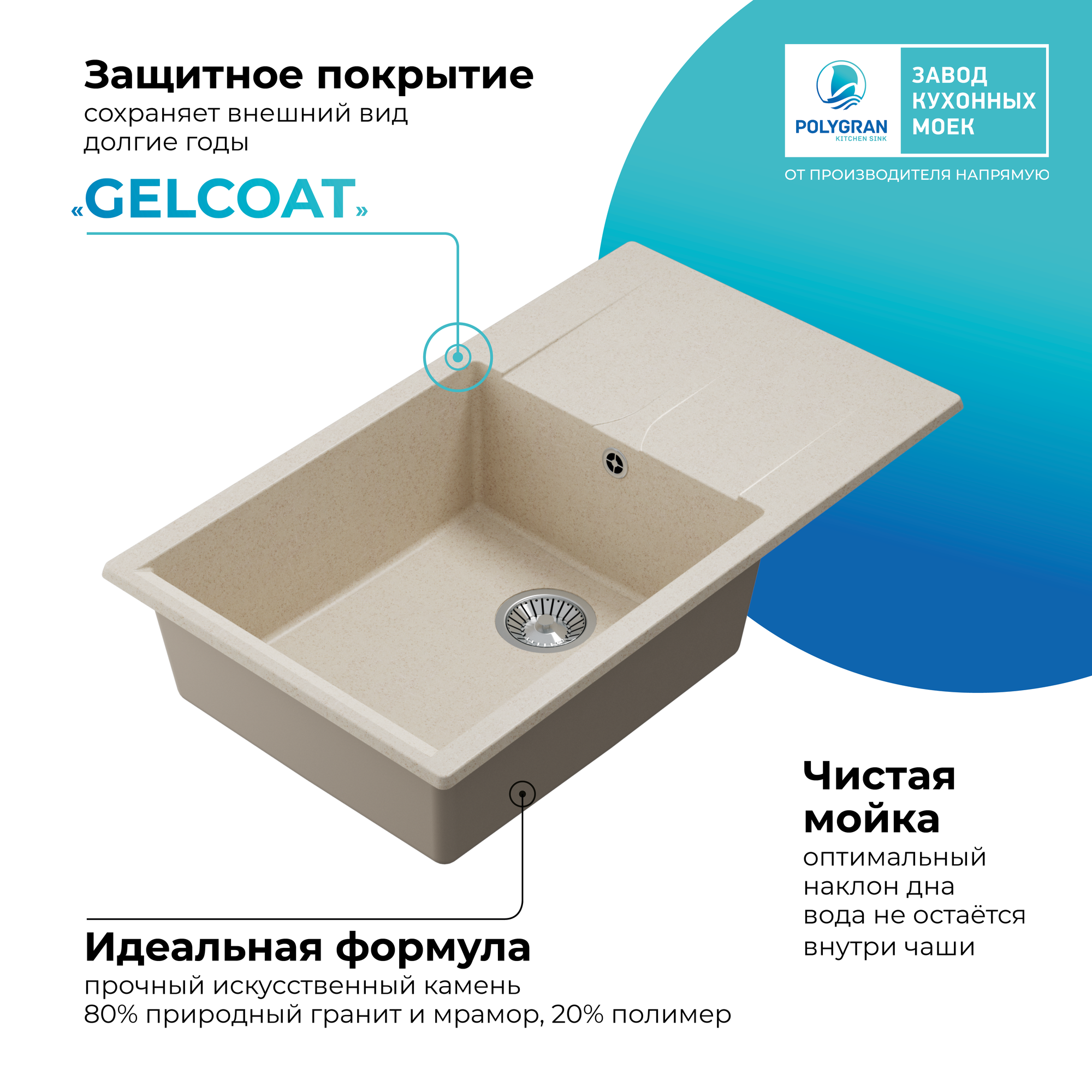 СохранитьPolygran GALS-862, мойка, мрамор, кремовый 327 интересное: