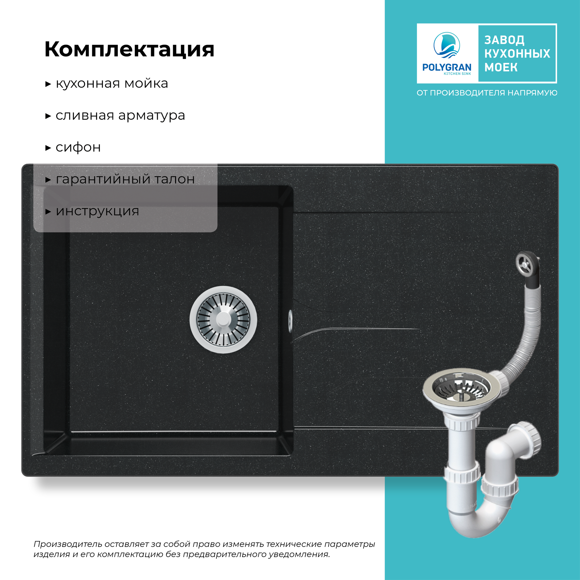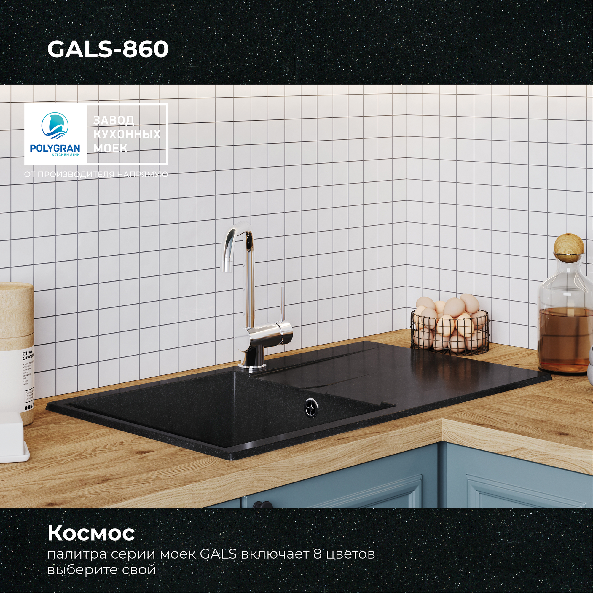 СохранитьМойка для кухни POLYGRAN Gals-860 каменная с крылом (№316 Космос) интересное: