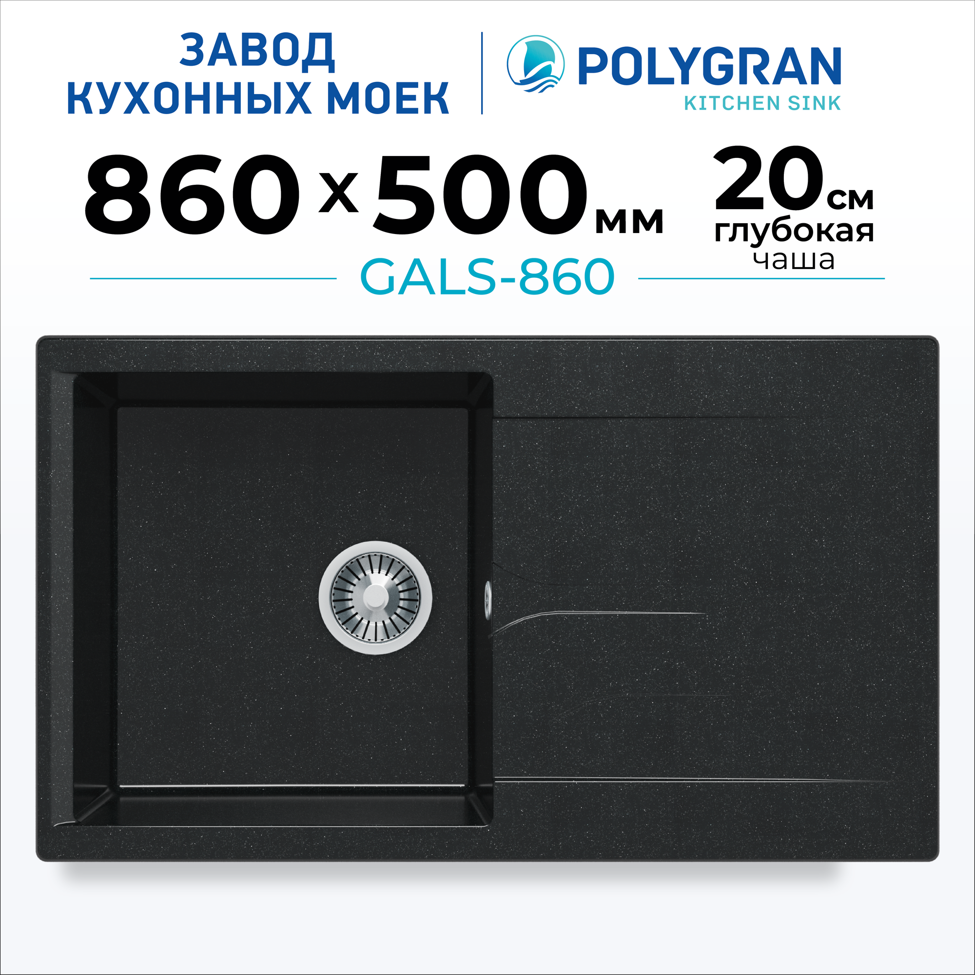 Мойка для кухни POLYGRAN Gals-860 каменная с крылом (№16 Черный)