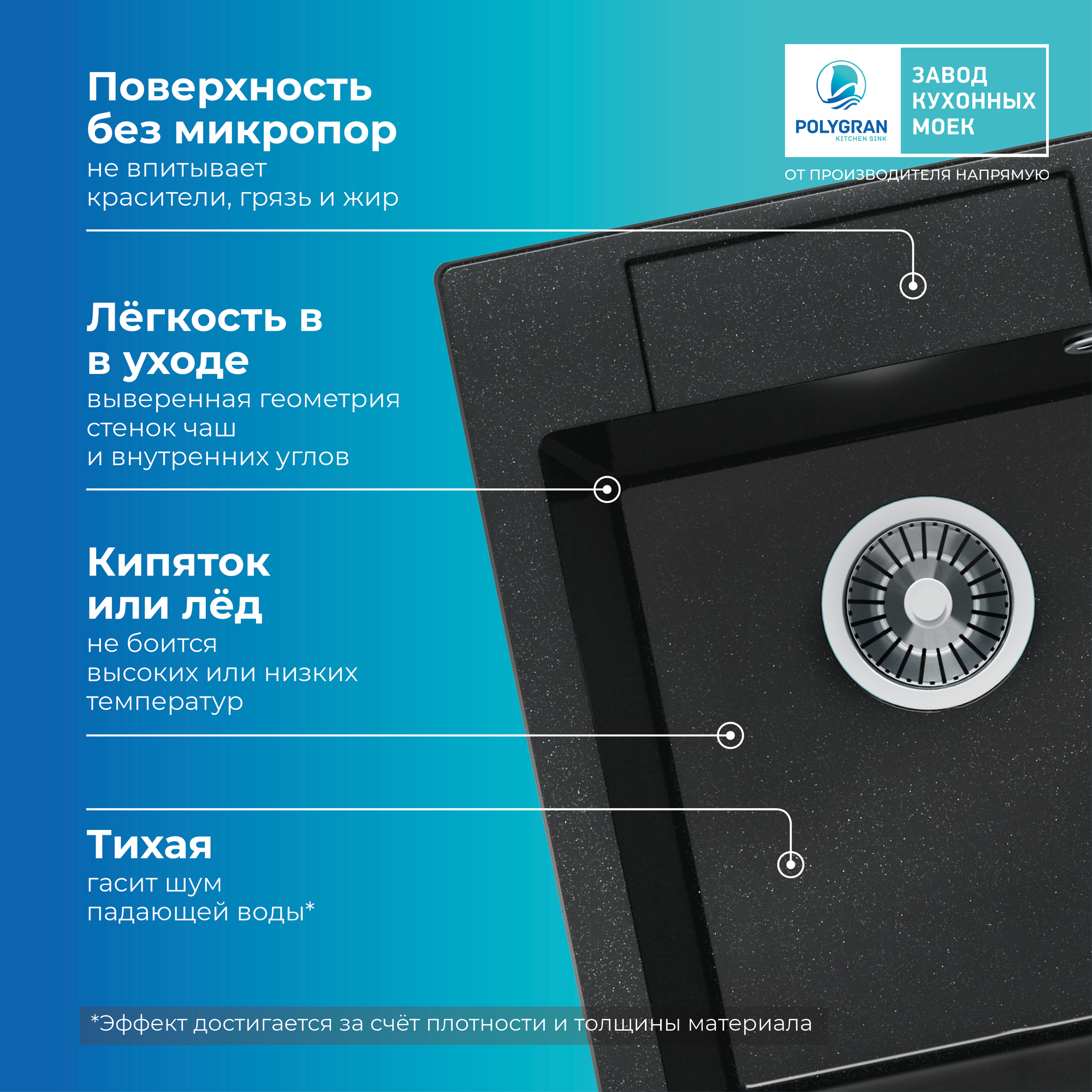 Polygran Кухонная мойка ARGO-420 (№16 Черный) 627321