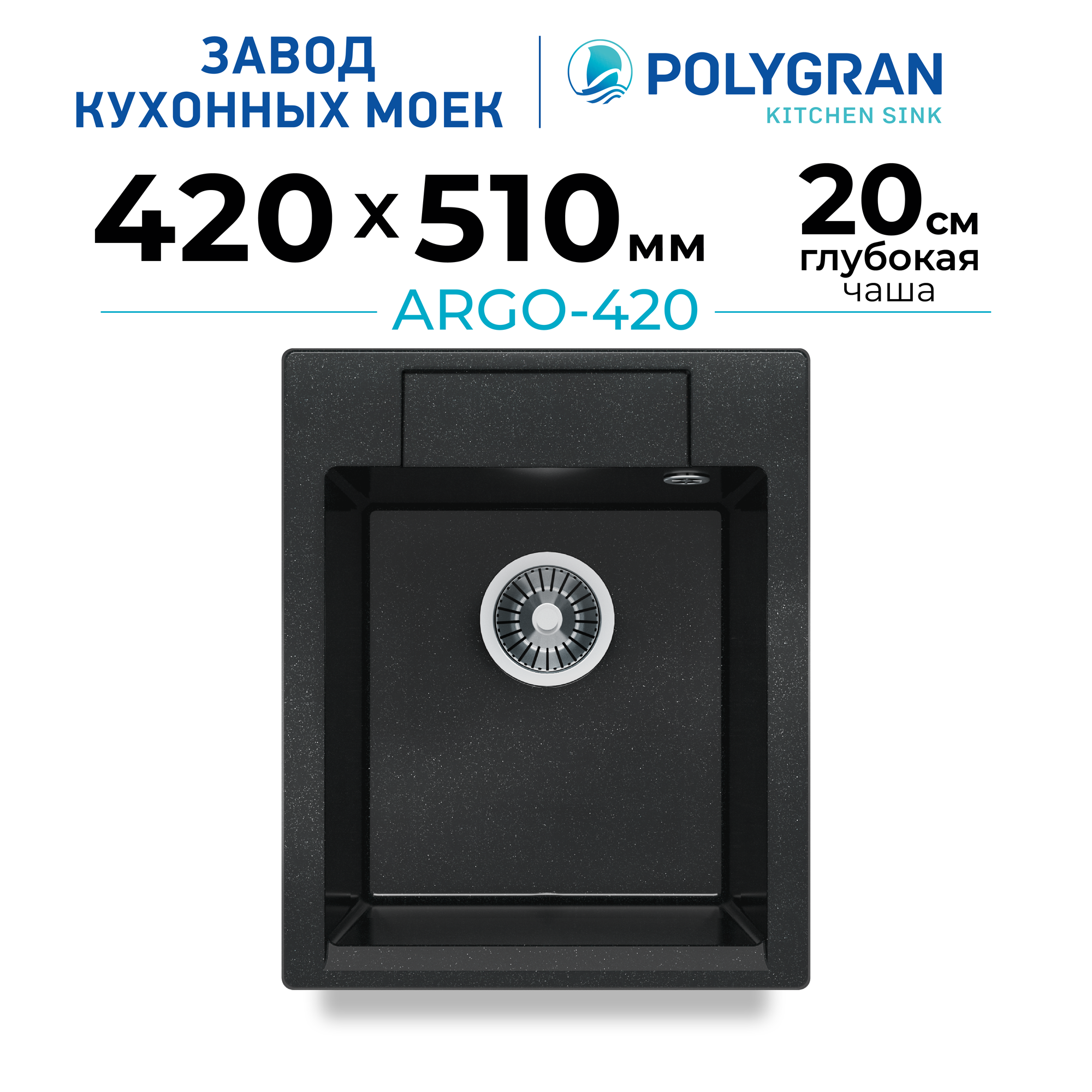 Кухонная мойка из искусственного камня POLYGRAN ARGO-420 (№16 Черный)