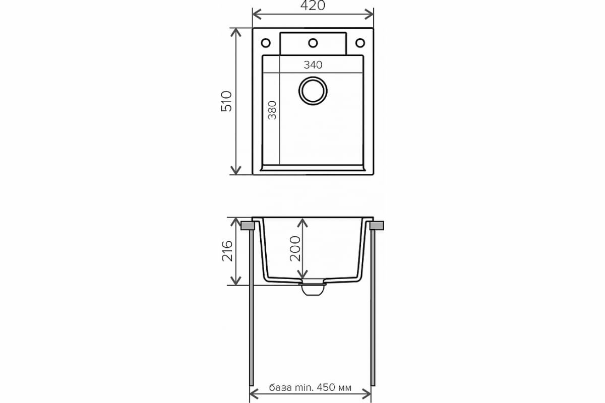 Врезная кухонная мойка 42 см, Polygran Argo-420, матовое черный 16
