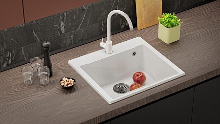 Кухонная мойка POLYGRAN Argo-560, искусственный гранит, 51см х 56см, белый