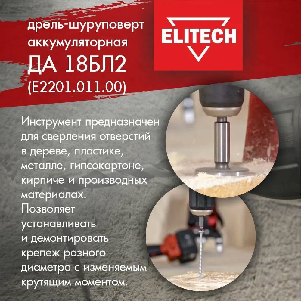 Elitech ДА 18БЛ2 ( E2201.011.00) Дрель аккумуляторная (198041)