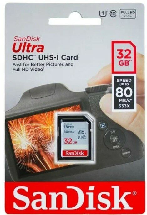 Карта памяти SanDisk Ultra SDHC 32 ГБ 120MB/s Class 10 UHS-I (SDSDUN4-032G-GN6IN)