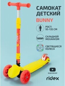 Самокат Ridex 3-колесный Bunny, 135/90 мм, желтый/красный