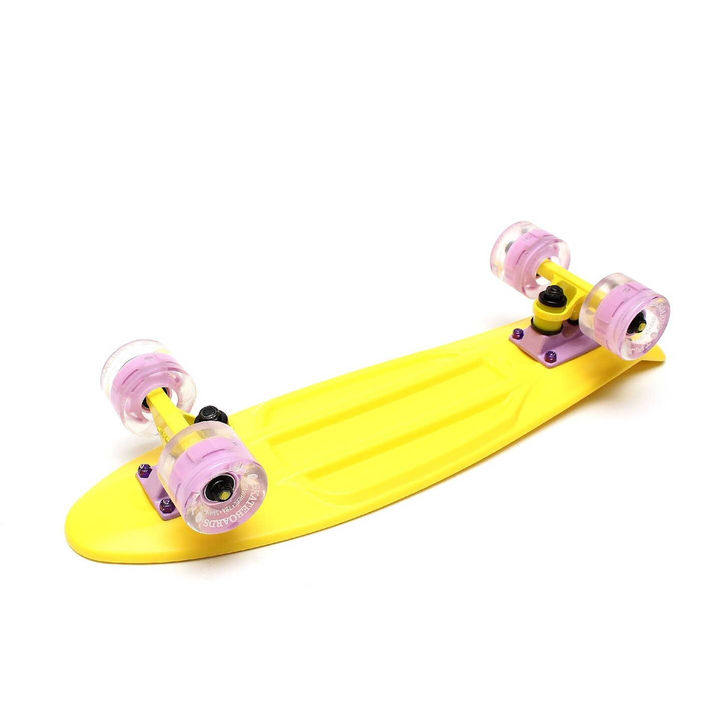 Купить Скейтборд пластиковый (пенни борд) со светящимися колесами для детей и взрослых Triumf Active (желтый) 22 дюйма