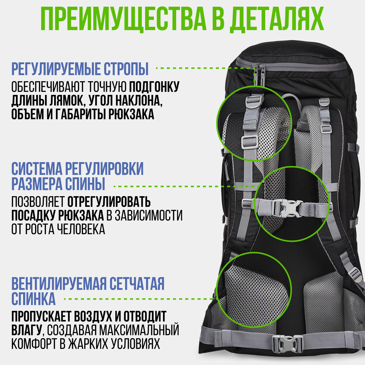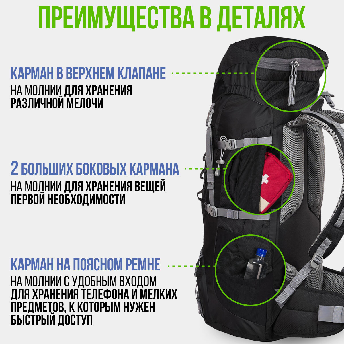 Рюкзак туристический TREK PLANET "DENALI 65", цвет: черный интересное: