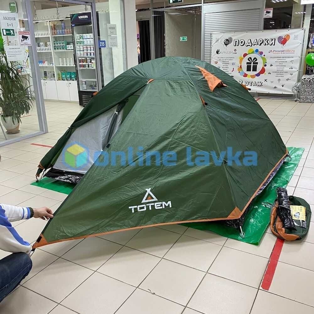 Палатка трекинговая трёхместная Totem Tepee 3 V2, зелeный