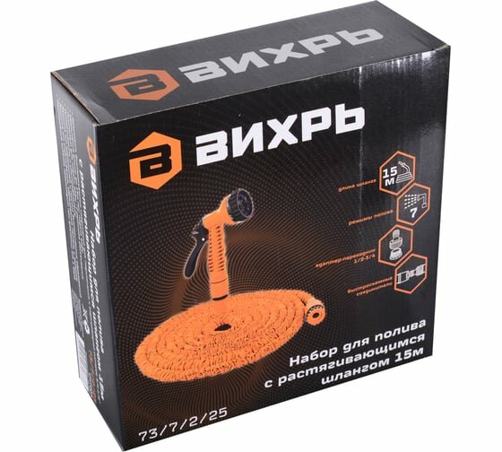 Набор для полива с растягивающимся шлангом 15м Вихрь 73/7/2/25