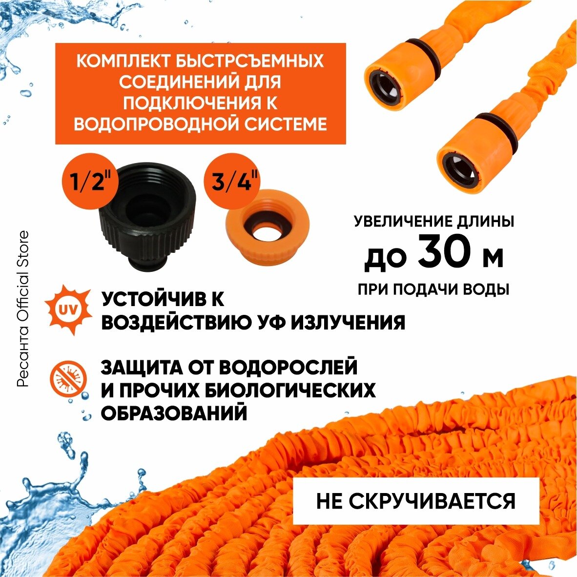 Набор для полива с растягивающимся шлангом 30 м Вихрь, 73/7/2/27