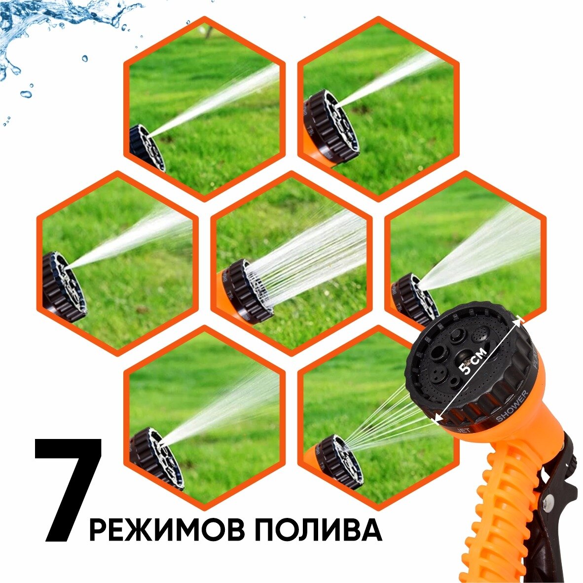 Набор для полива Вихрь, растягивается до 50 м, армированный латекс, 7 режимов полива