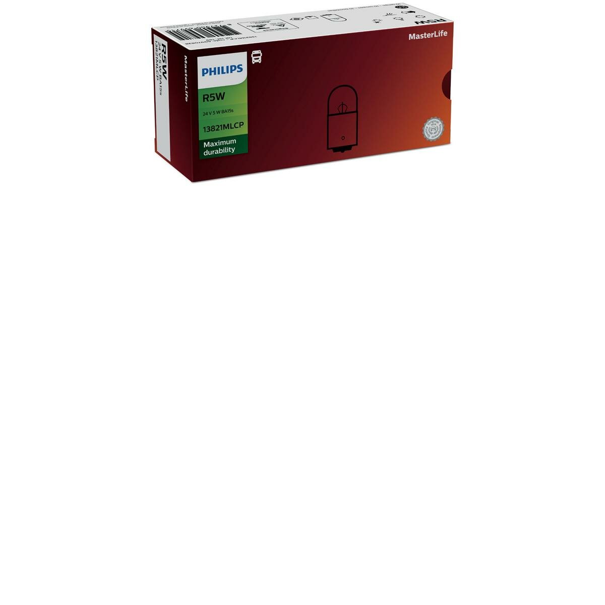 Лампа R5W 24V-5W (BA15s) MasterLife, PHILIPS 13821MLCP (1 шт.)