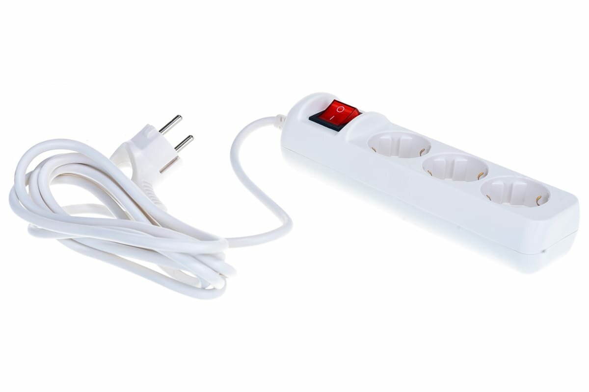 Удлинитель Эра 3 розетки 3 м ПВС 3х0,75 мм2 10 А 2,2 кВт с кнопкой белый (Б0035751)