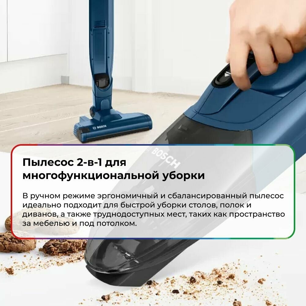 Вертикальный пылесос Bosch BCHF2MX20 сухая уборка синий