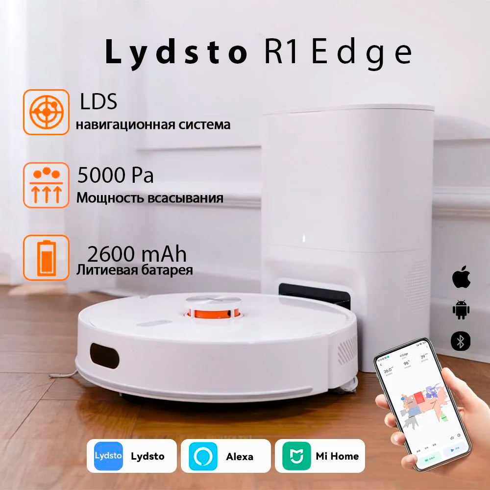 Купить Робот-пылесос LyDSto R1 Edge белый с сухой и влажной уборкой, со станцией самоочистки 30000 Па
