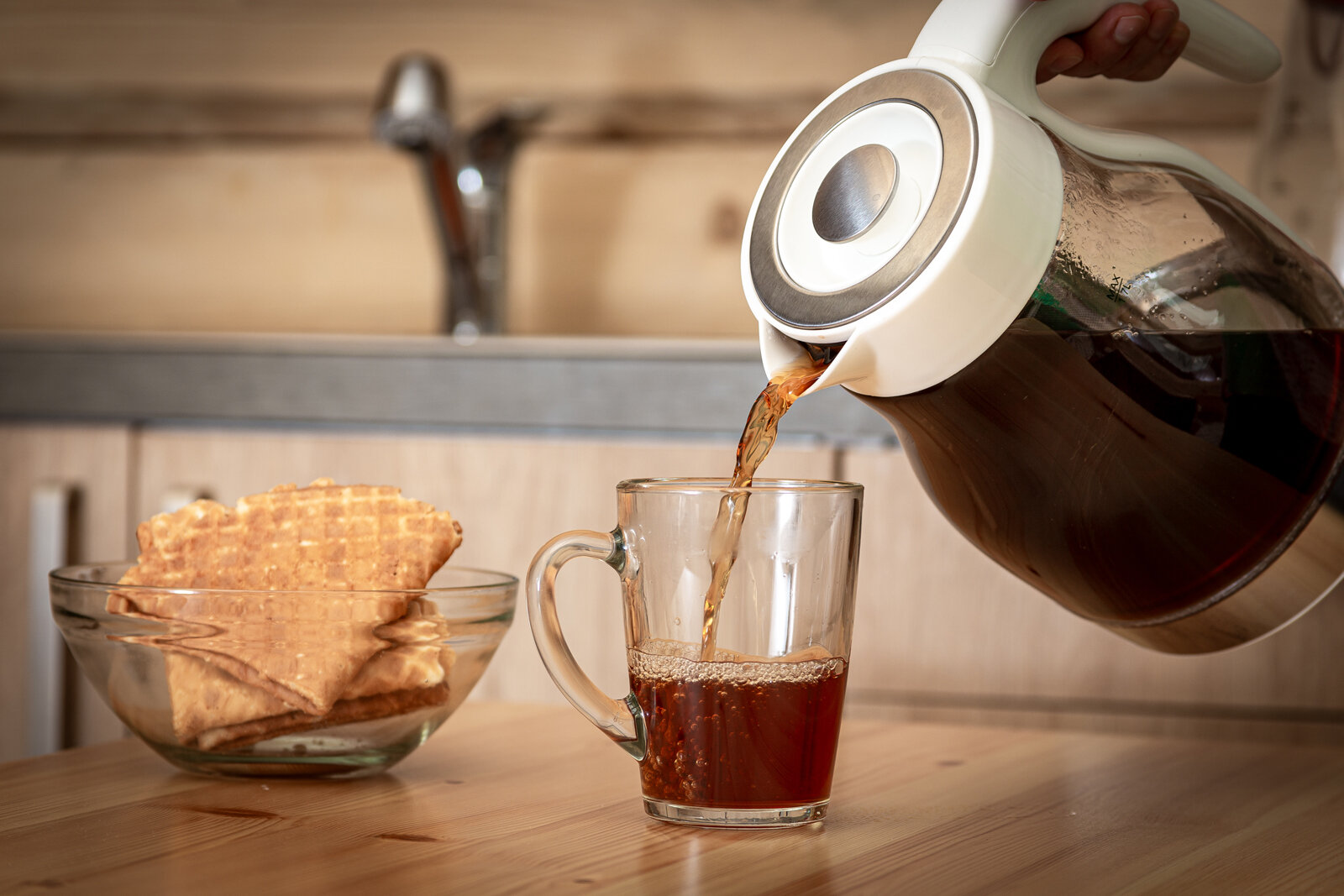 Колба для заваривания чая имеет очень мелкую перфорацию, чаинки из нее в чайник не попадают. |