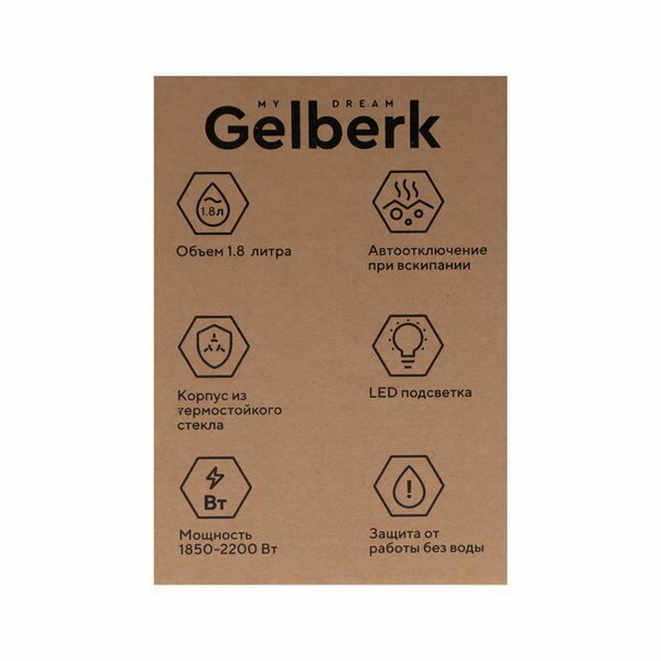 Чайник электрический Gelberk GL-470 шоколад 1,8л стекло