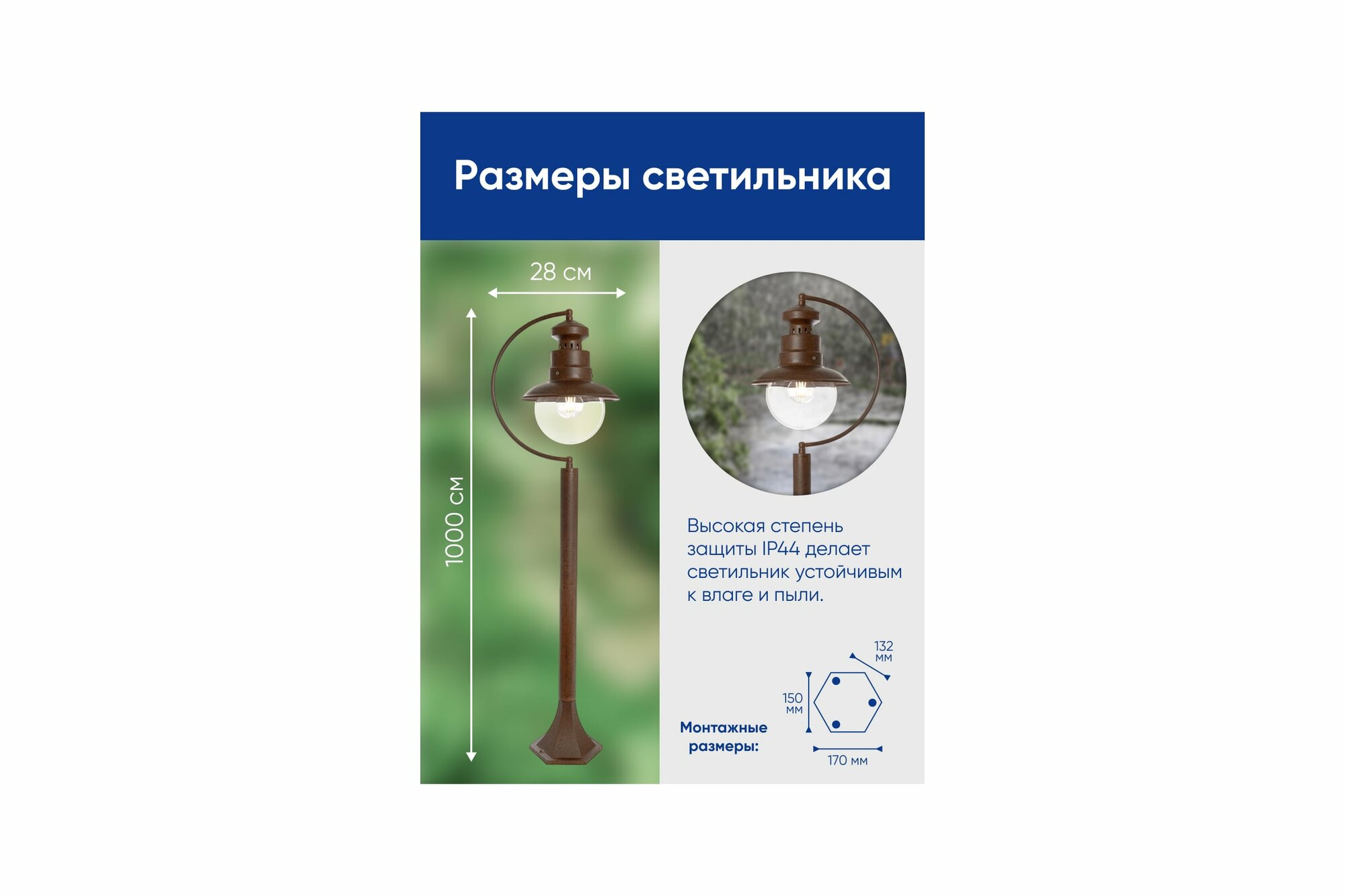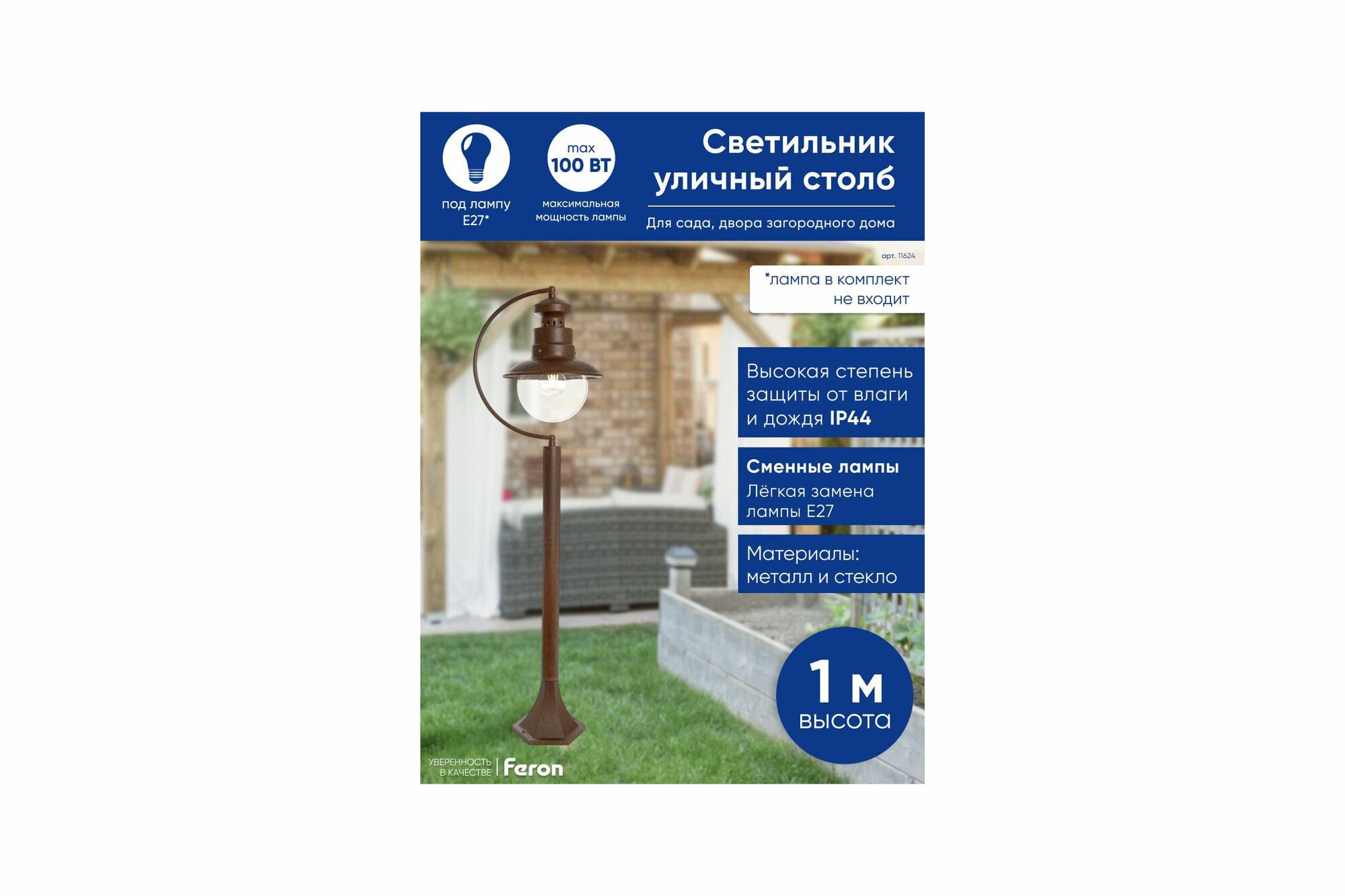 Светильник садово-парковый Feron PL576 столб 60W 230V E27, коричневый, 11624