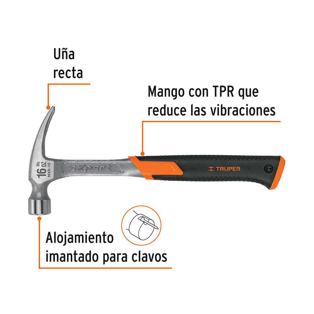 Купить Молоток-гвоздодер цельнометаллический Truper 450 г двухкомпонентная ручка (17857)