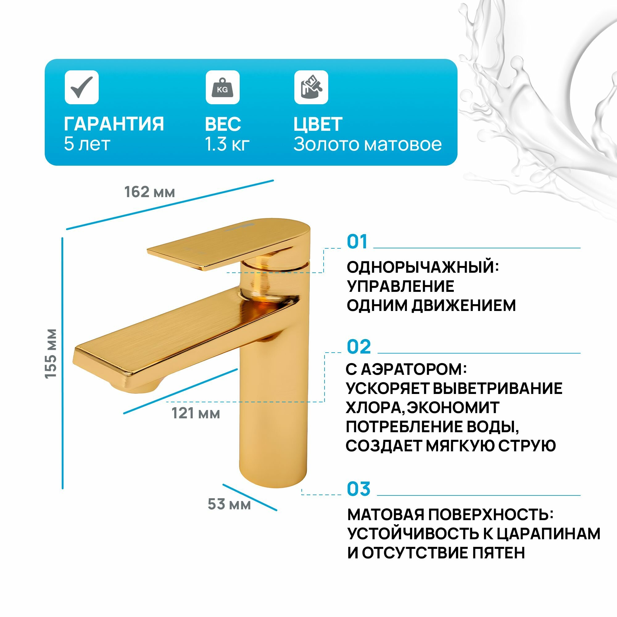 Смеситель для раковины Wasserkraft Aisch 5503, матовое золото
