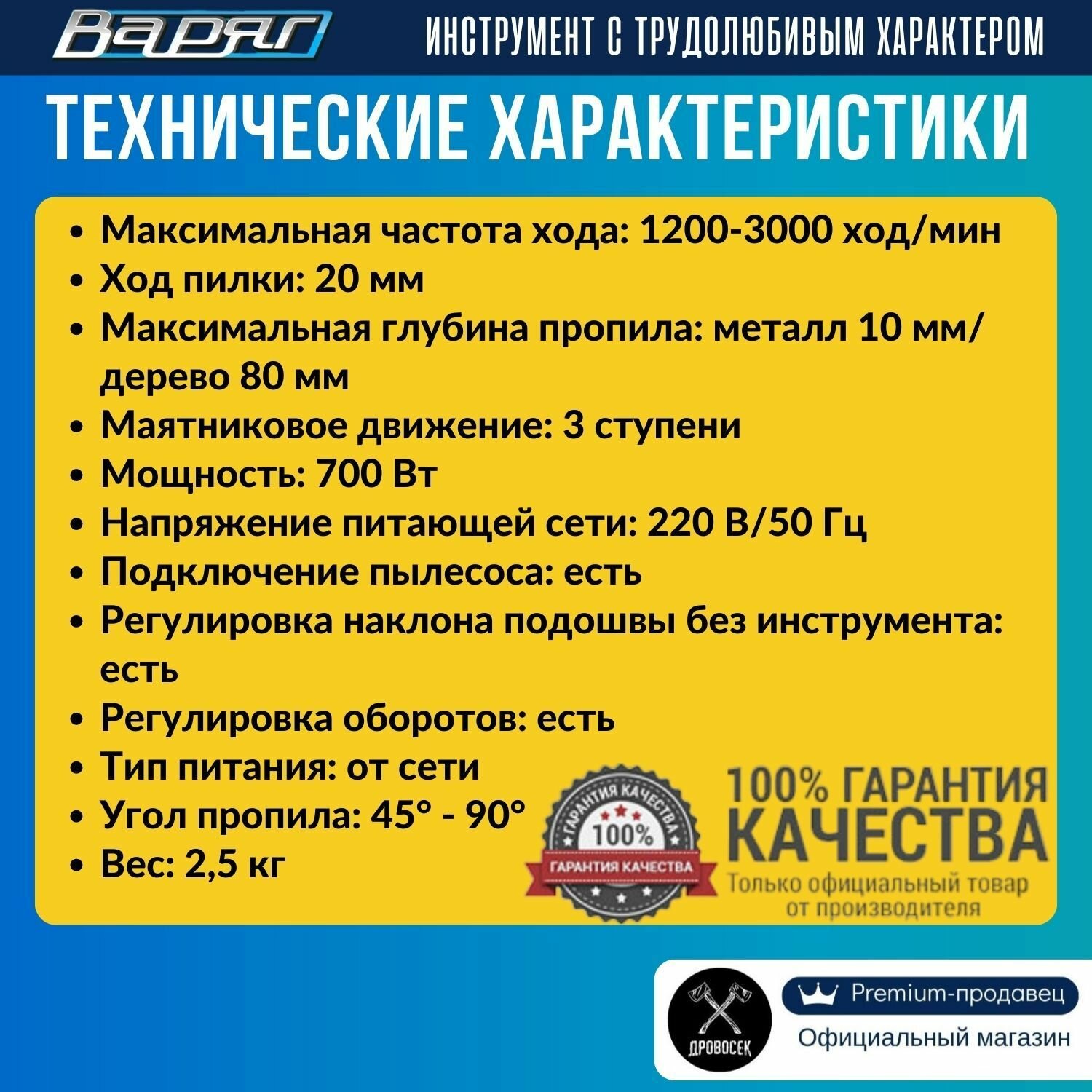 Лобзик электрический сетевой варяг ЛЭ-700, электролобзик с регулировкой скорости и маятниковым режимом, в подарок - набор пилок "Ассорти" интересное:
