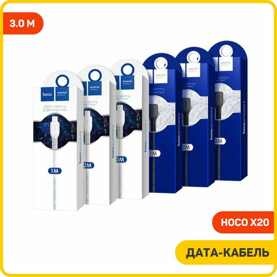 Кабель Hoco X20 Flash USB - Lightning, 3 м, 1 шт., белый