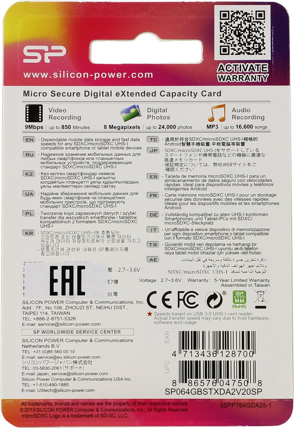 Карта памяти Silicon Power SP064GBSTXDA2V20 (SP064GBSTXDA2V20)