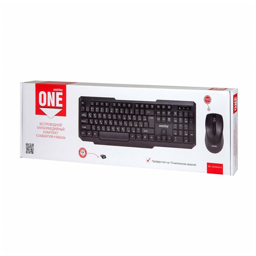 Клавиатура + мышь SmartBuy ONE, беспроводная, USB, черный (SBC-230346AG-K)