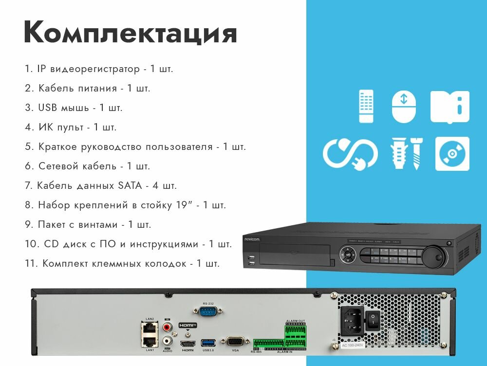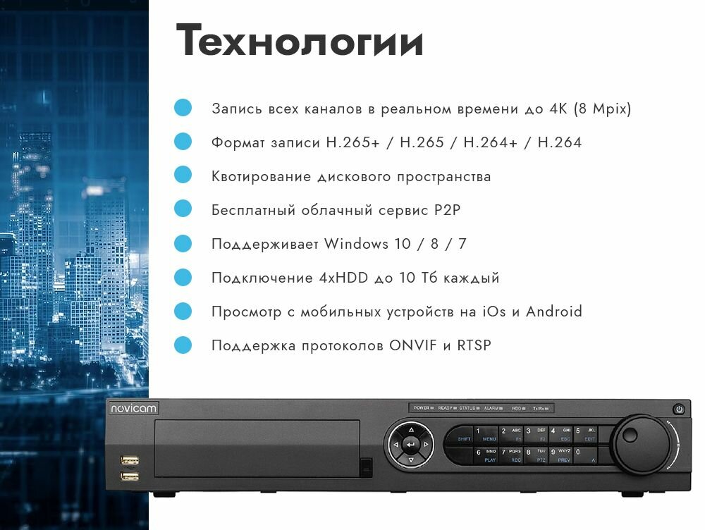 NR4832 Novicam PRO v.3034 - IP видеорегистратор, запись 32 канала IP 8Мп 30к/с, 4 HDD до 10 Тб, поддержка H.265+(IVMS 4.5 PRO, Hik-Connect, Guarding Vision) интересное: