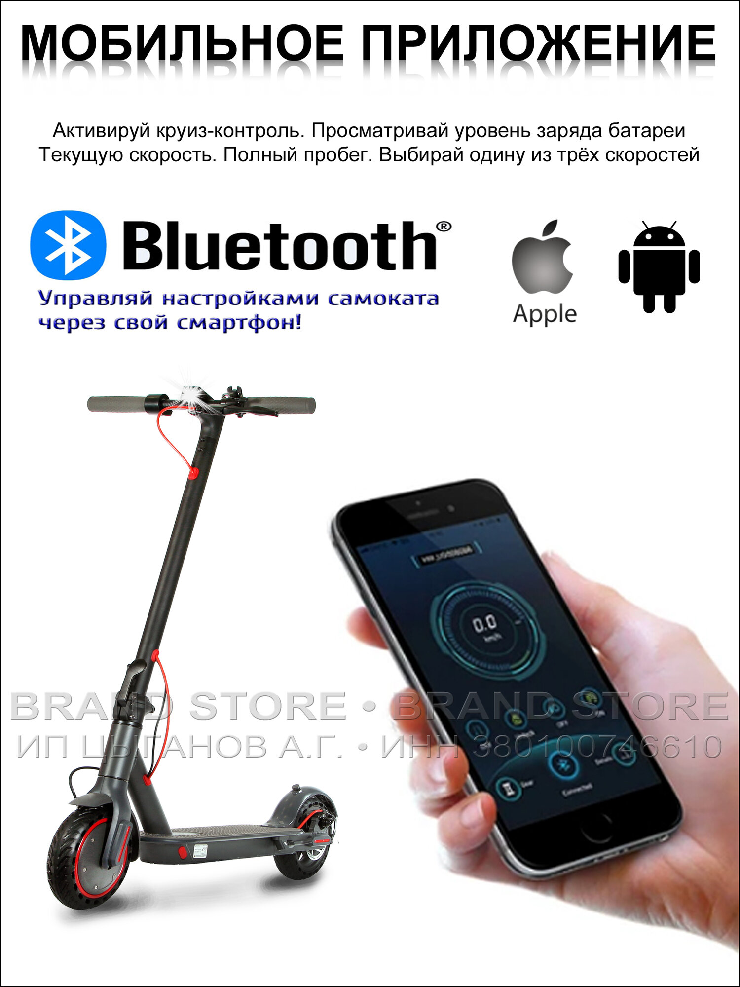 Порадовало приложение, только, не понимаю, почему, чтобы подключиться по блютузу к самокату надо обязательно включить GPS, но может это и можно как-то обойти. Хорошие тормоза, настроенные из коробки, предыдущий самокат после этого страшно брать ибо привык к данному отзывчивой и резкой при надобности тормозной системе. |
