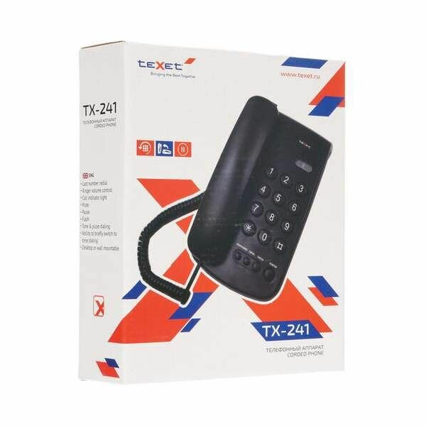 Телефон проводной TEXET TX-241 повтор последнего набранного номера, черный