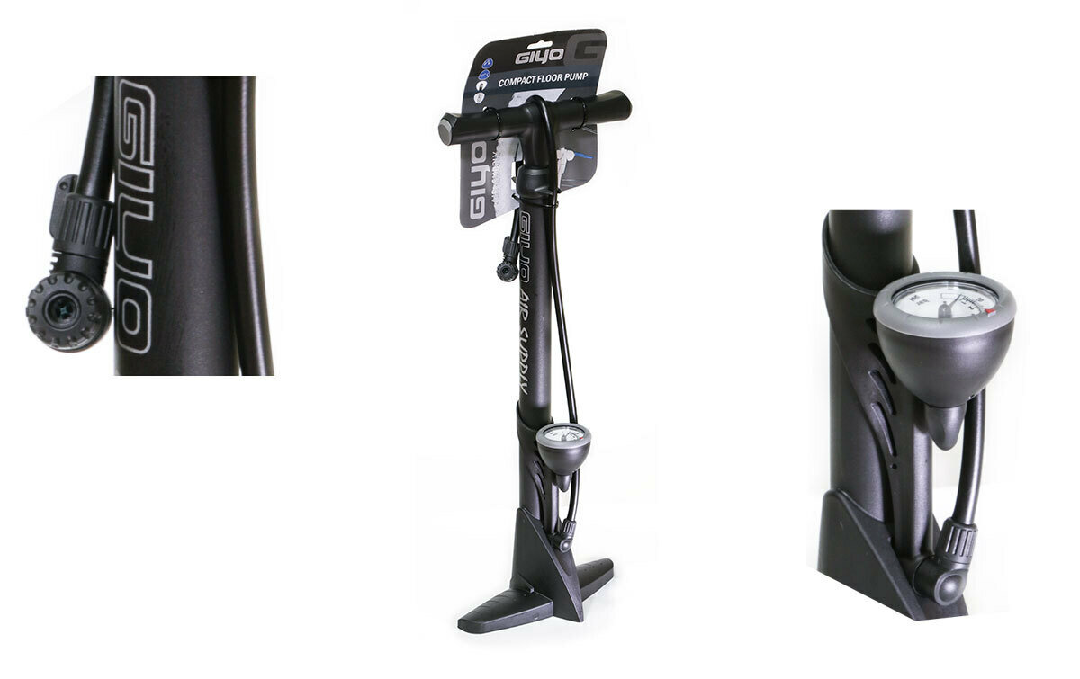 Насос GIYO GF-43P напольный пластиковый c манометром универсальная головка на шланге