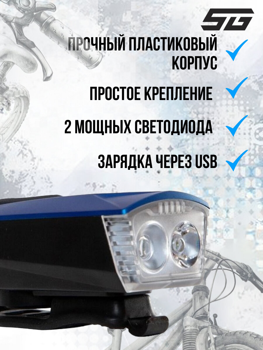 Фонарь передний STG FL1593 с электросигналом 120дб 300lm 1800 mAH синий Х103265 .