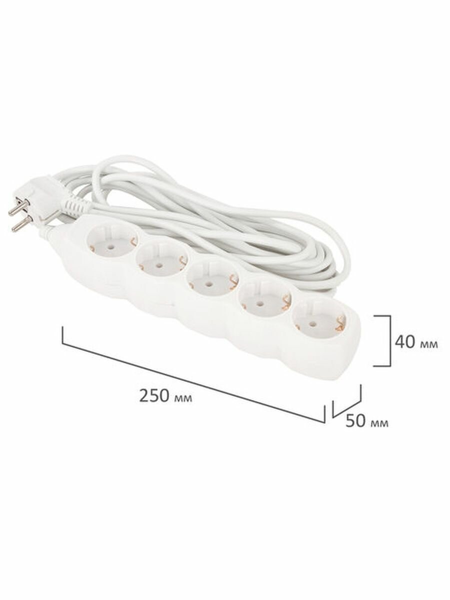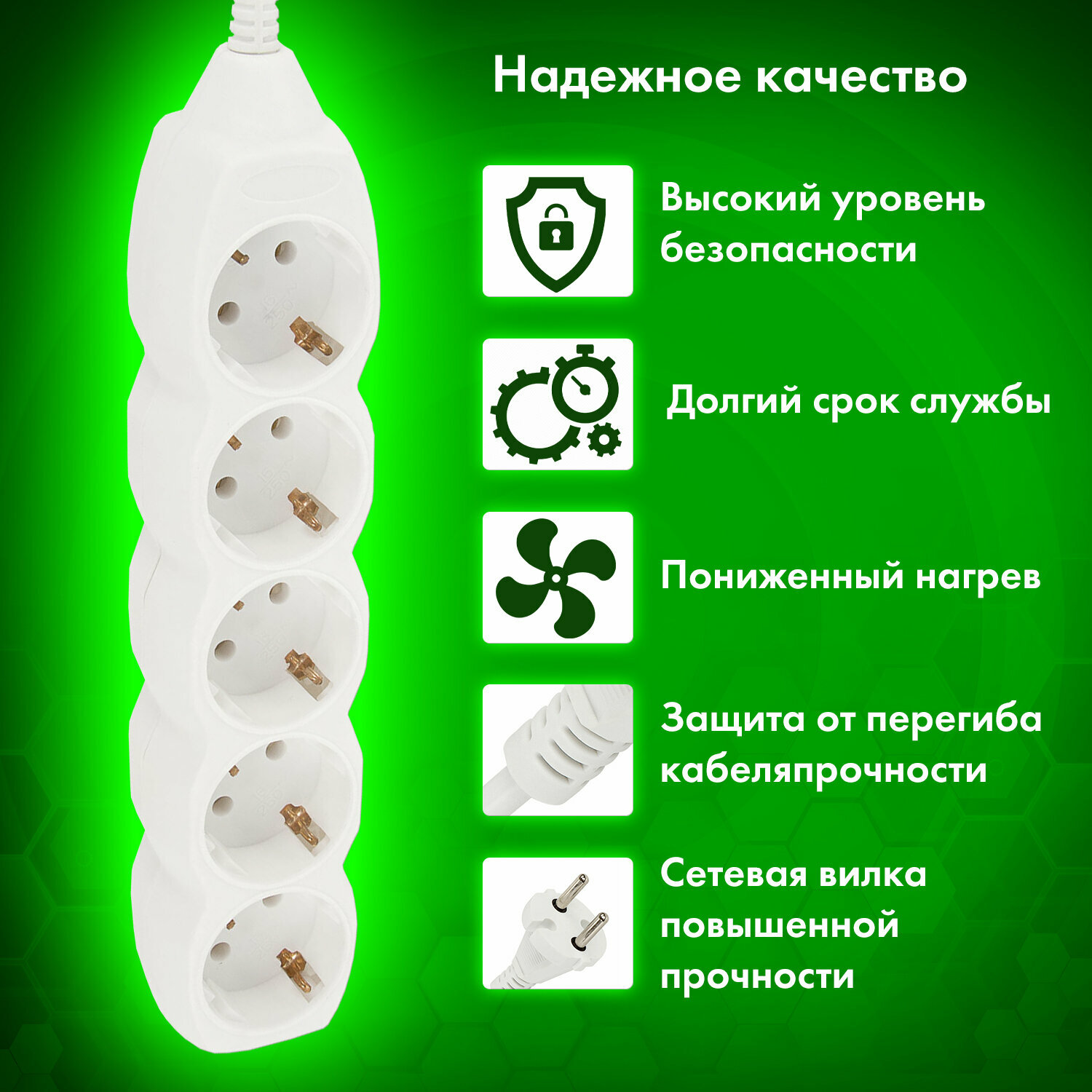 Удлинитель сетевой SONNEN U-155G, 5 розеток, c заземлением, 10 А, 5 м, белый, 511437 (арт. 511437)
