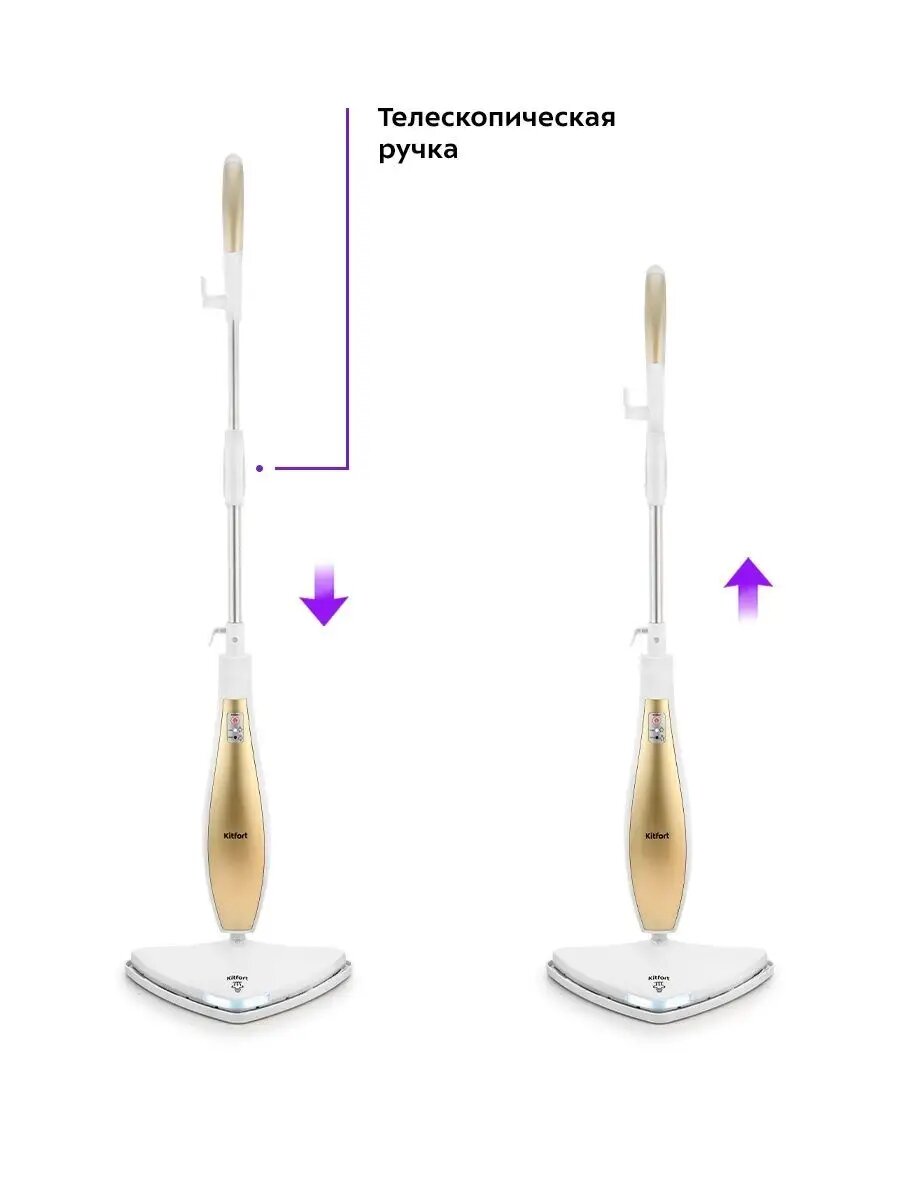 Паровая швабра Kitfort Kt-1014, 1300 Вт, 410 мл, шнур 5 м, бело-золотая Kitfort 7602806 .